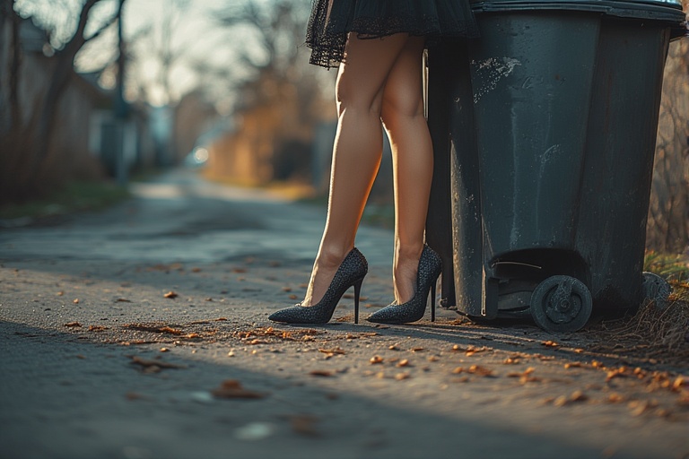 Instead of heading to a party, a date, or a luxury venue, she calmly walks outside to take out the trash. 🗑️😄