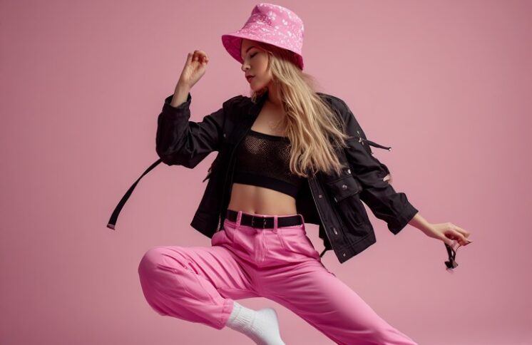 Yoana’s low dance moves aren’t just stylish they’re full of confidence, energy, and fun. From her bold crop jacket and mesh top to pink pants and bucket hat, every detail amplifies her vibe. Dancing like Yoana is about letting go, moving freely, and turning any moment into a playful performance.